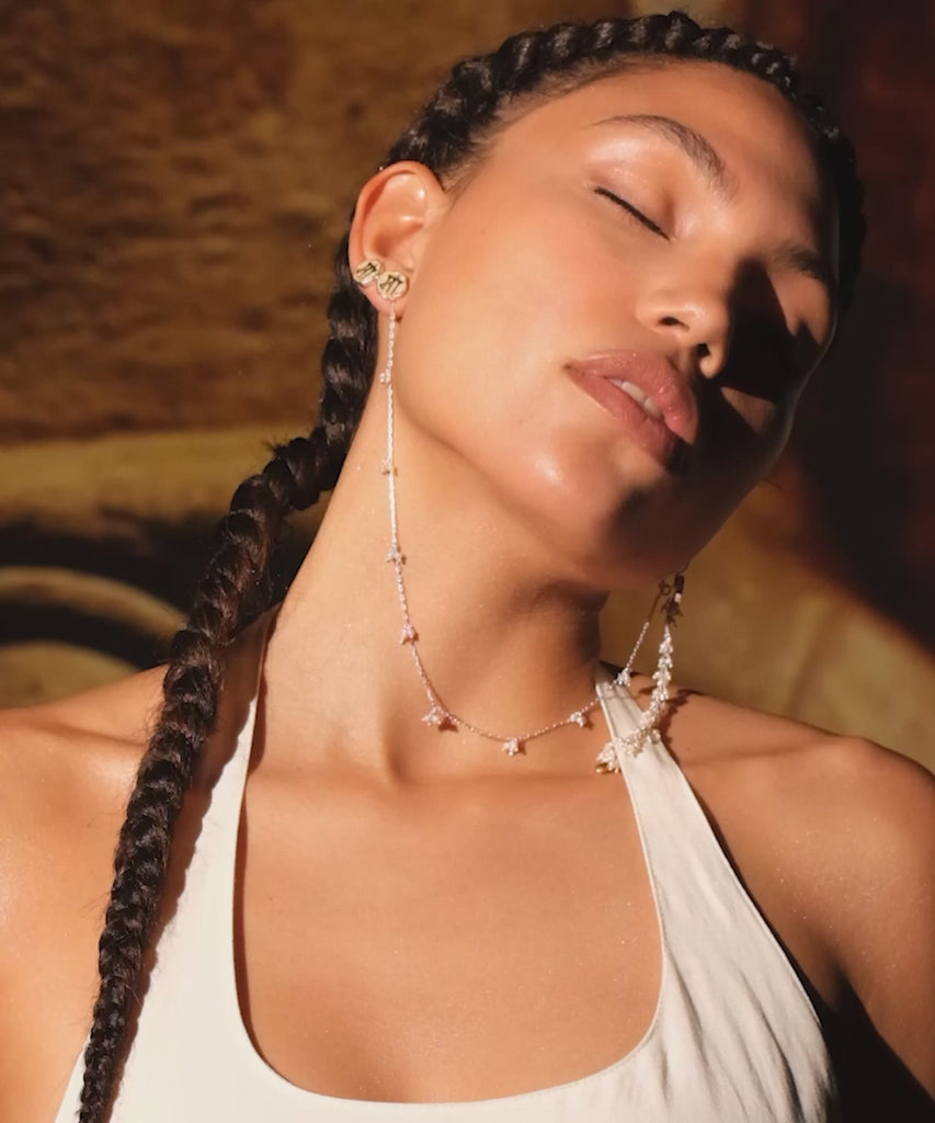 925K gümüş, 22K altın kaplama, beyaz inci mozaik, el yapımı küpe