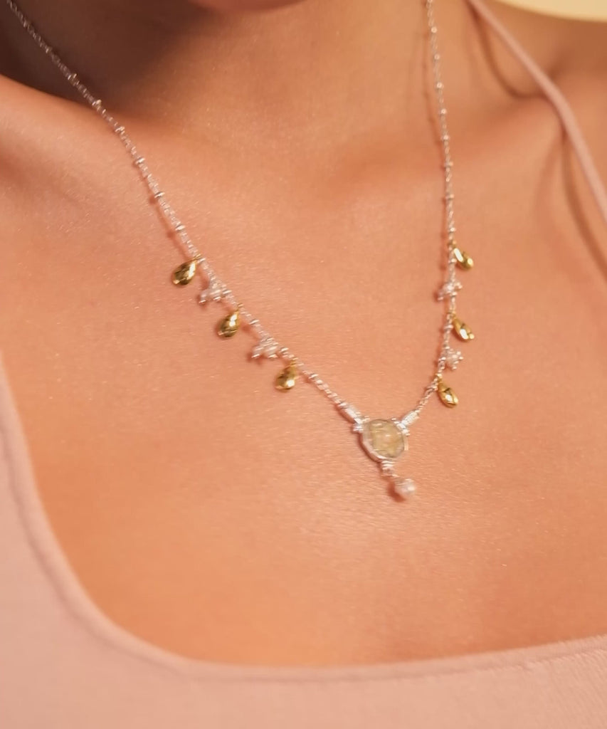 925K gümüş, 22K altın kaplama, beyaz inci mozaik, beyaz inci el yapımı kolye